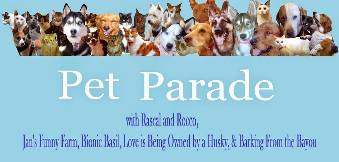 | The Pet Parade is hosted by Rascal and Rocco Co hosted by Jan's Funny Farm, Bionic Basil, Barking from the Bayou and me from Love is being owned by a husky |