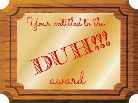DeleteDefinition of the "DUH" award - having an extreme brain fart, going completely "DUHHHHH" for a minimum of 3 minutes. hahahahahahaha!